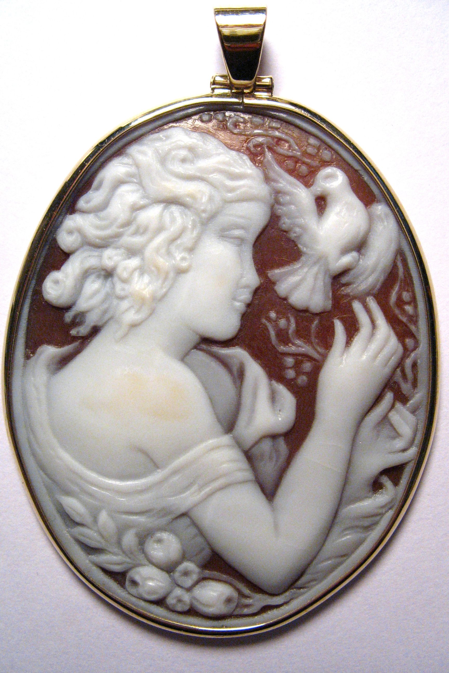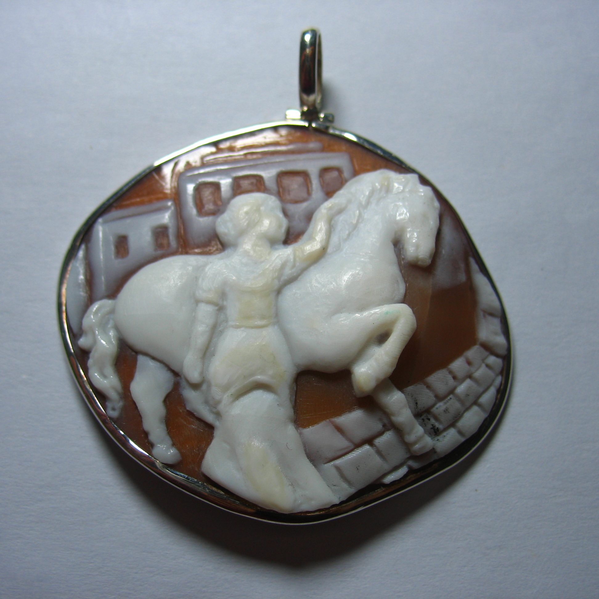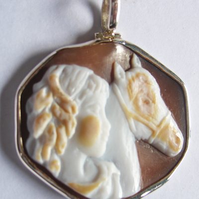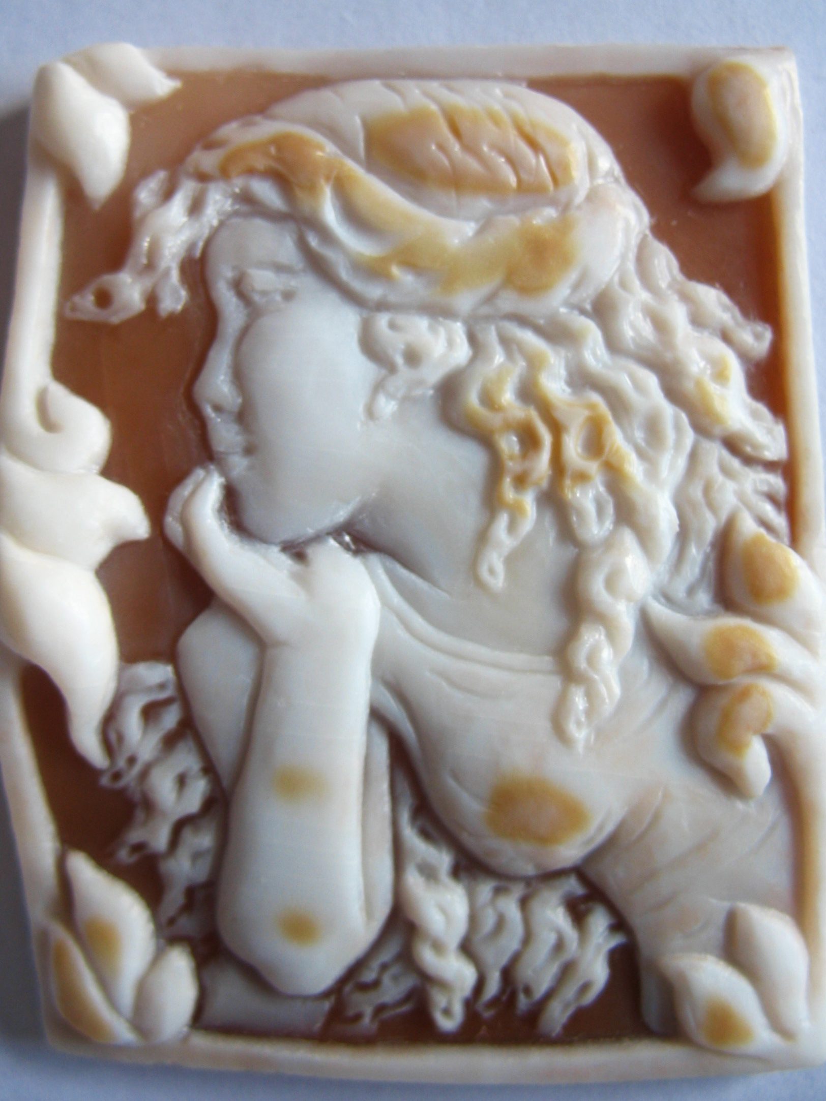 Cameo worked through the art of sculpture in an exotic sea shell type Cassis Madagascariensis (Sardonix).