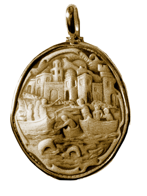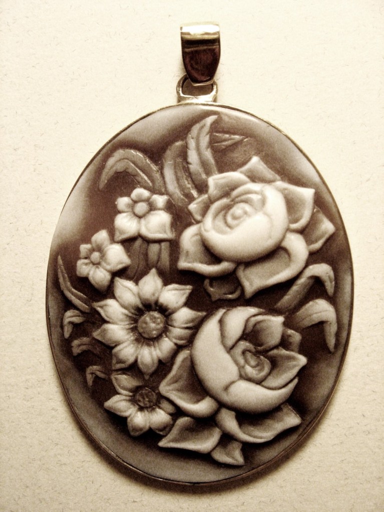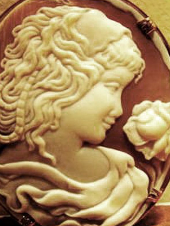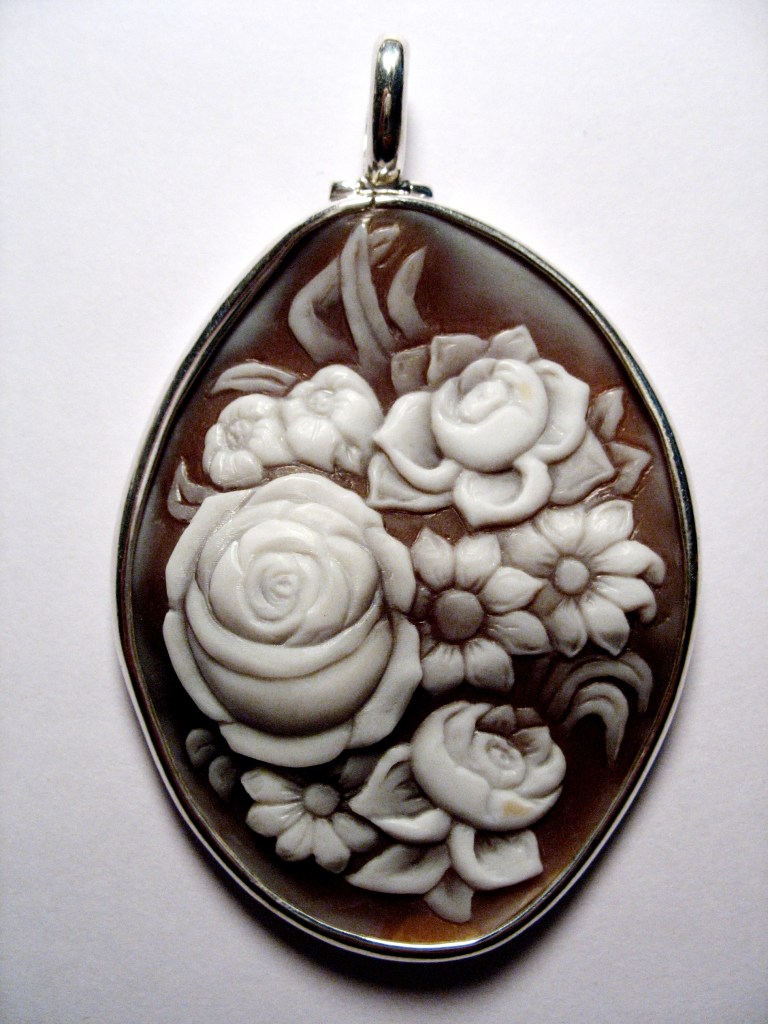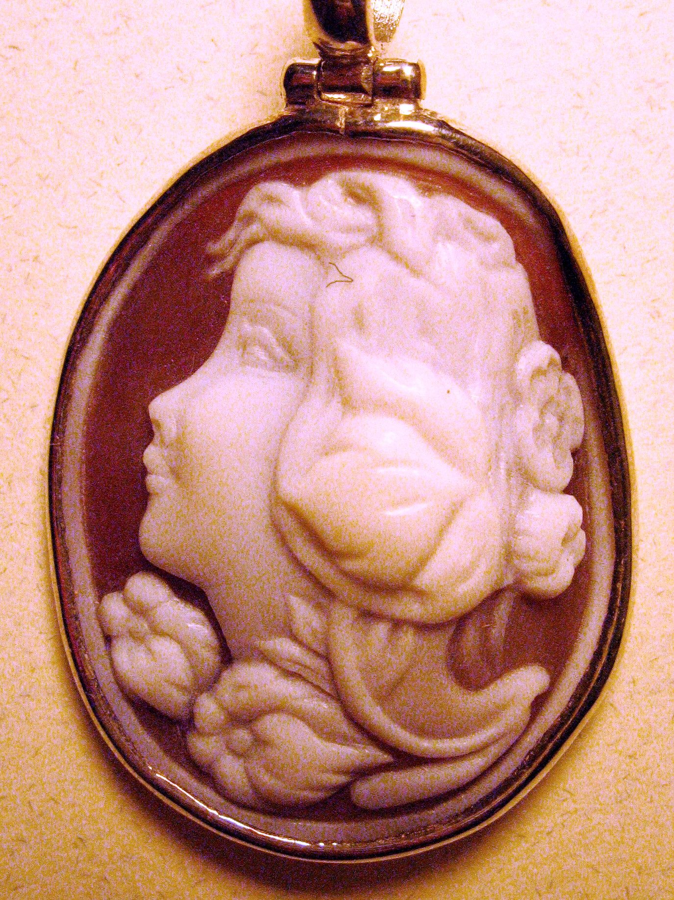 Cameo worked through the art of sculpture in an exotic sea shell type Cassis Madagascariensis (Sardonix).