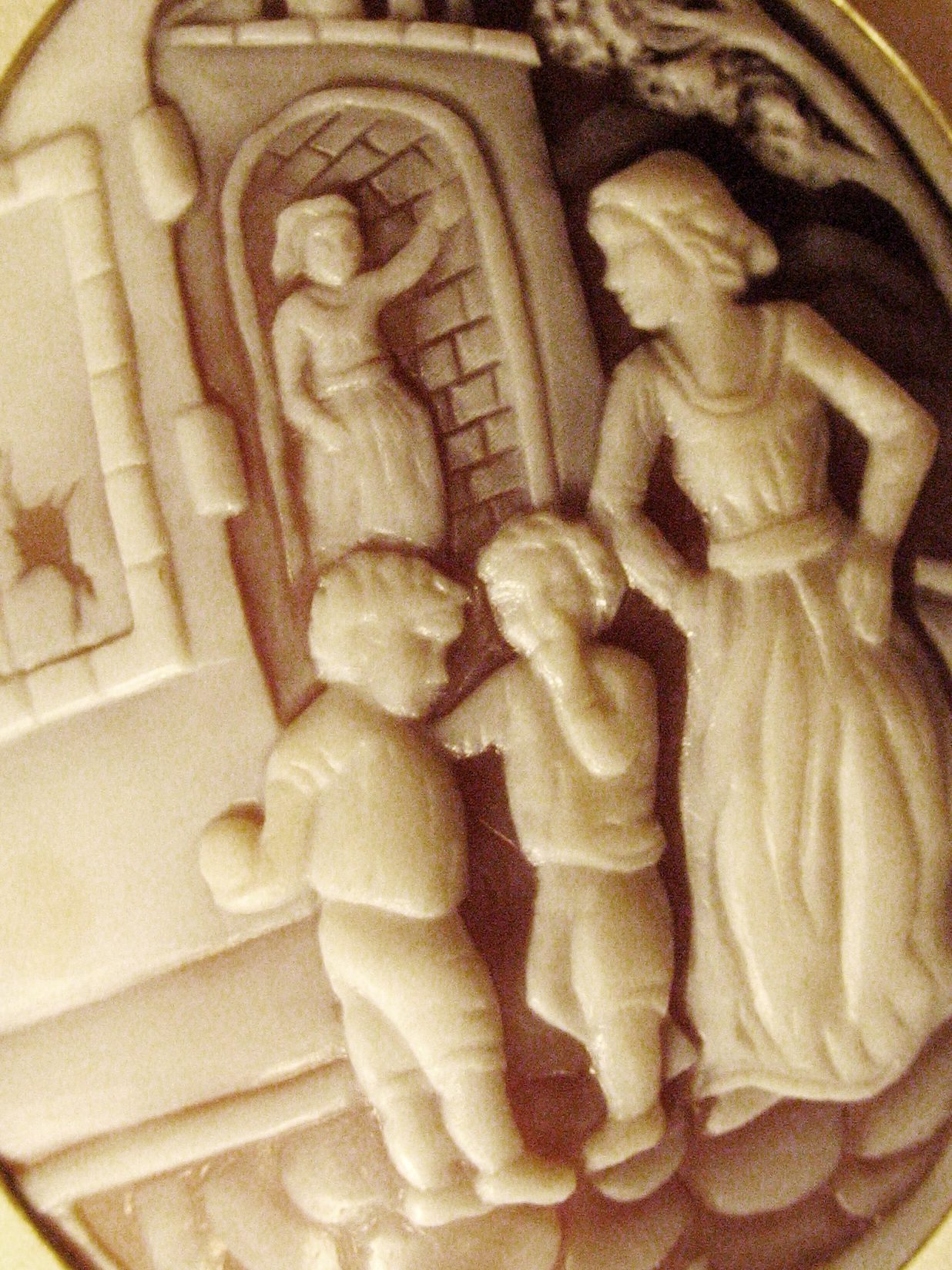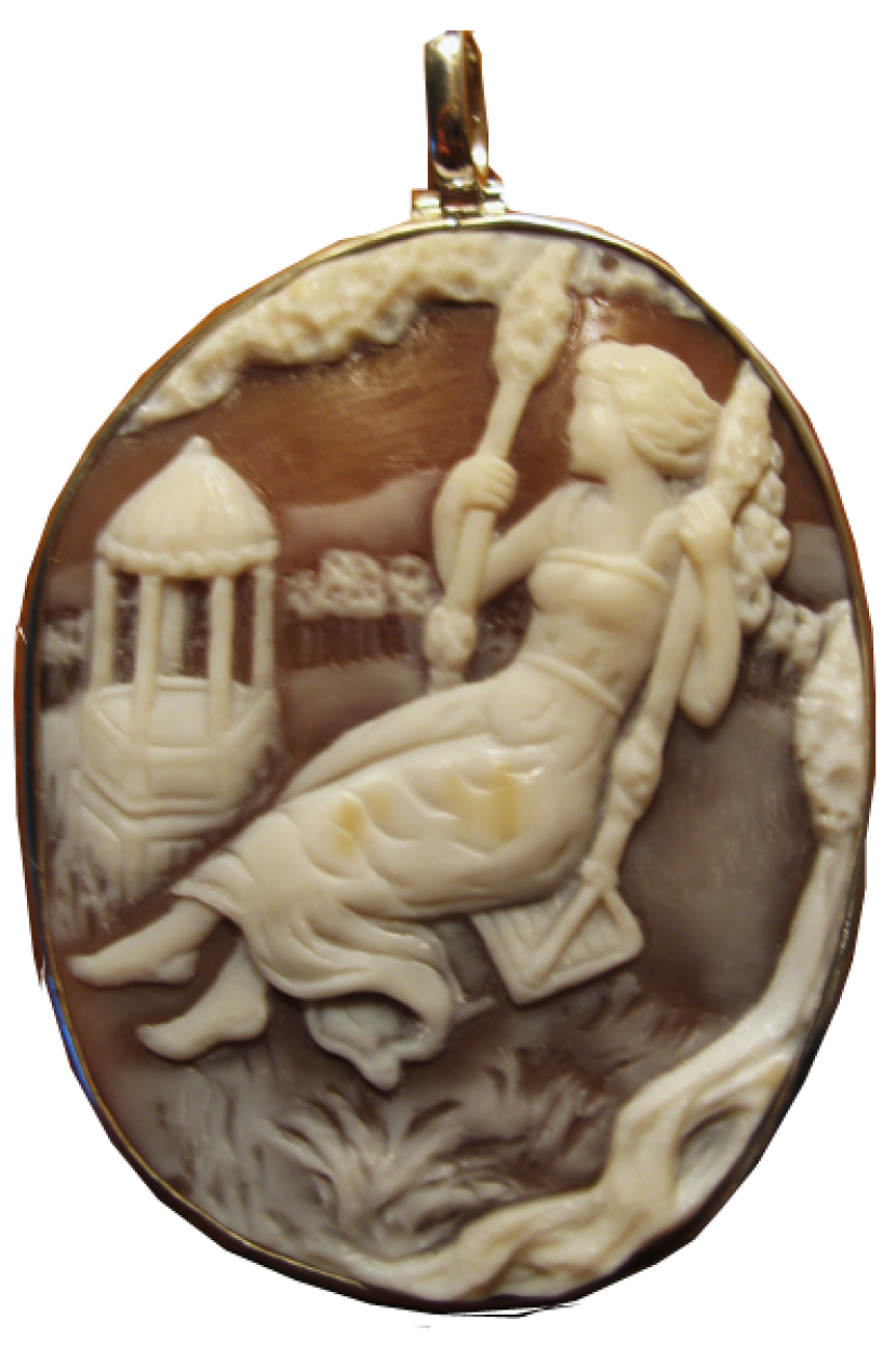 This Cameo is inspired by the work of the French Rococo artist Jean-Honoré Fragonard, “The Swing” made in 1767.