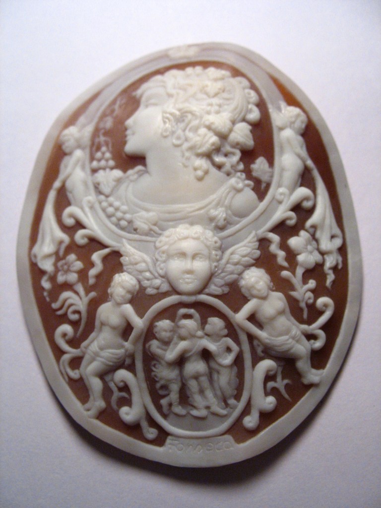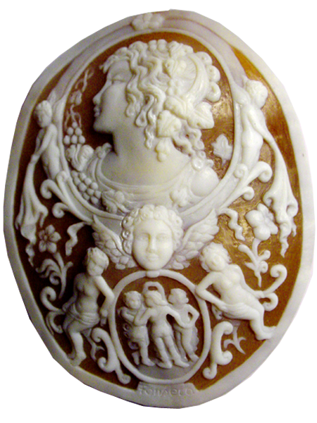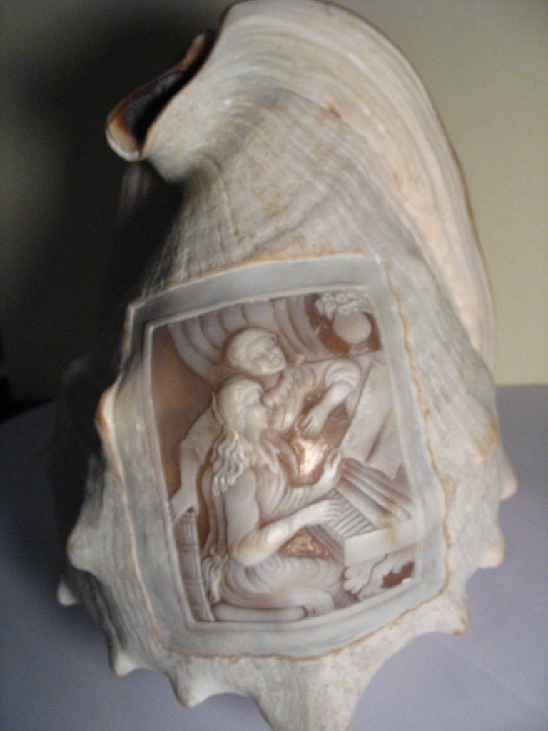 Cameos worked throughout the art of Sculpture in exotic seashells.